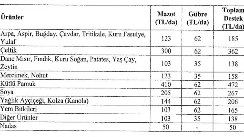 Tarımsal üretimin ve gıda arz güvencesinin sürdürülebilirliğinin sağlanması, verim ve kalitenin yükseltilmesi, tarımsal üretimde çevreci yaklaşımların benimsenmesi ile uygulanan politikaların etkinliğinin arttırılması amacıyla hazırlanan 2024 yılında yapılacak bitkisel üretime yönelik desteklemeler ile bazı tarımsal desteklemelere ilişkin hususlar ile ilgili kararlar alındı. 2024 yılı Çiftçi Kayıt Sistemi (ÇKS) kayıtlarına göre tarımda kullanılan mazot ve gübre için de destekler verilecek.