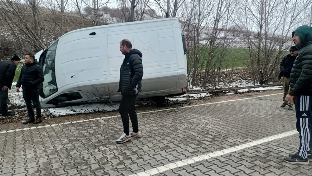 Kaza, Alaca ilçesi Alacahüyük köyünde meydana geldi. Edinilen bilgiye göre, Salim G. idaresindeki 19 AER 421 plakalı panelvan araç, sürücüsünün direksiyon hakimiyetini kaybetmesi neticesinde yoldan çıkarak yan yattı. Kazada araçta sıkışan sürücü yaralandı.