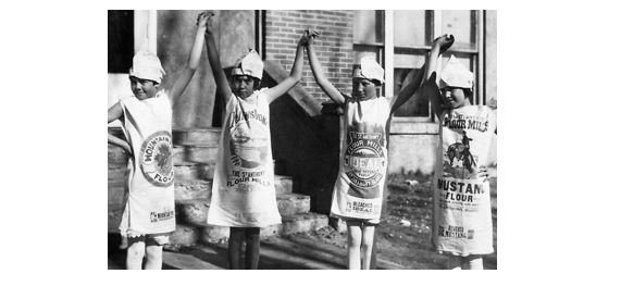 Büyük Buhran’ın getirdiği yoksulluk, anneler ve aileler için yaşamı sürdürebilmenin büyük bir mücadelesine dönüşmüştü. Bu zorluklar karşısında anneler, boş un çuvallarını çocuklarına giysi yapabilmek amacıyla kullanmaya başladı. Çuvalların kumaşı dayanıklı, geniş ve çok yönlüydü. Bu sayede anneler; bebek bezi, gömlek, etek, pantolon hatta elbise bile dikebiliyordu.