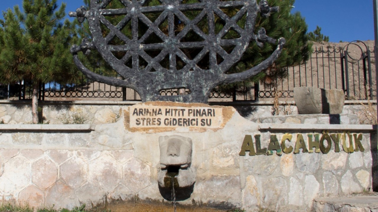Alacahöyük girişinde konumlanan ve taş mimarisiyle öne çıkan çeşme, “Arinna Hitit Pınarı – Stres Giderici Su” ibaresiyle bölgeye gelenlerin ilgisini üzerine topluyor. Özellikle yaz aylarında serinlemek isteyen ziyaretçilerin uğrak noktası haline gelen pınar, tarihi atmosfer içinde farklı bir deneyim sunuyor.