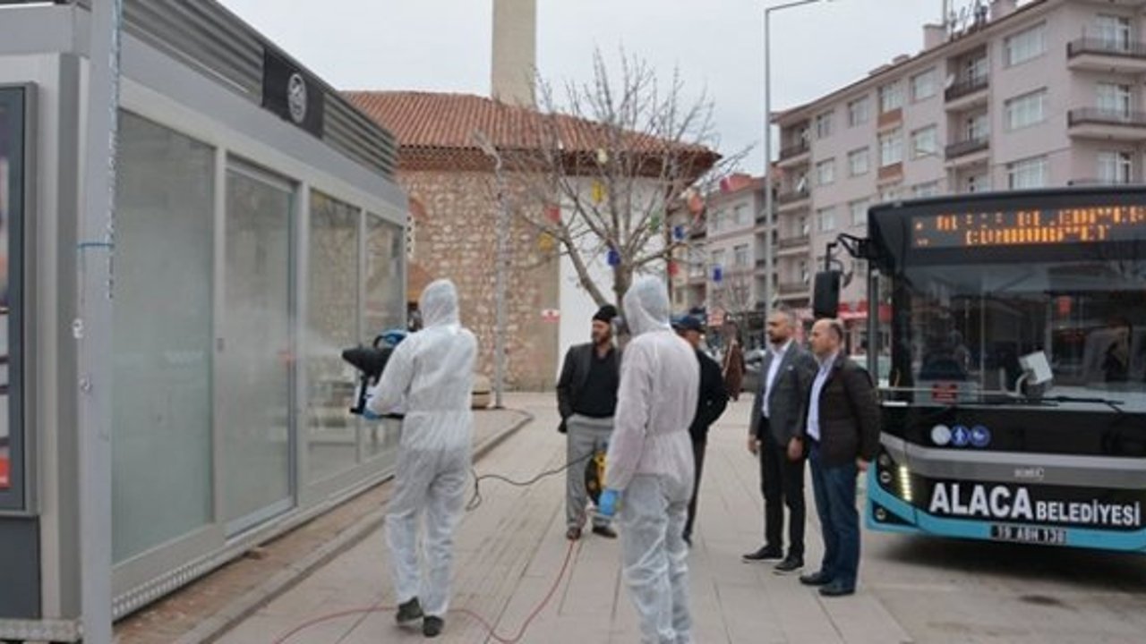 Alaca'da da dezenfekten çalışmalarına başlanıldı. Alaca Belediyesi tarafından özel kıyafet giyilerek ilçede bulunan camiler, kuran kursları, parklar ve sosyal hayata endeksi her yer ilaçlanıyor. Alaca Belediyesi tarafından yapılan açıklamada "İlçemizde dezenfekten çalışmalarımız başladı. Tüm camilerimiz, kuran kursları, parklar ve sosyal hayata endeksli her yerde tedbir amaçlı özel hazırlanmış solüsyon ile insan hayatına zarar vermeyen ilaçlama çalışmalarımız hız kesmeden devam ediyor" denildi.