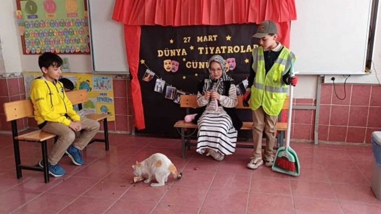 “İnsanı; insana, insanla anlatma sanatı’ olarak da bilinen Dünya Tiyatrolar Günü nedeniyle Alaca Mehmet Akif Ersoy İlkokulu 4/A Sınıfı öğrencileri sınıf öğretmenleri Leyla Kılıç rehberliğinde hazırladıkları tiyatro oyununu sahnelediler.