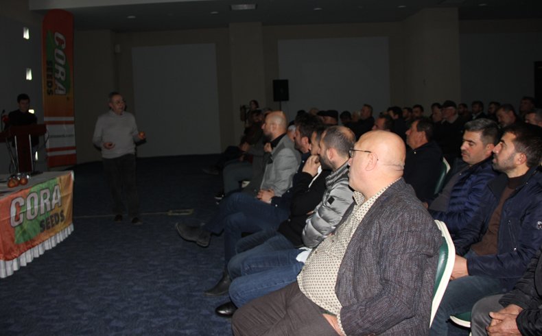 Enrico Rappuoli, “ Cora Seeds 2006 yılında İtalya’ın Cesena kentinde kurulan bir aile şirketidir. 2020 yılından beri Türkiye ile çalışmalarımız mevcuttur. Şirketimiz şu anda domates, karpuz ve soğan tohumu üreticiliğiyle ilgileniyor. Sadece hibrit çeşitlere yatırım yapıyoruz. Tüm misyonumuz zirai hayata hizmet etmek. Soğanları farklı, farklı hava şartlarında üreterek tohumların gösterdikleri farklılıkları ölçüyoruz. Bunun yanı sıra sadece kendi laboratuvarımızda kendi ekipmanlarımızla üretim yapıyoruz. Amacımız en iyi F1 tohumu üreterek çiftçilerimizin en iyi verimi en az maliyetle en kısa sürede almalarını sağlamaktır” dedi.Programın soru cevap kısmından sonra katılanlara yemek ikramıyla program sona erdi.