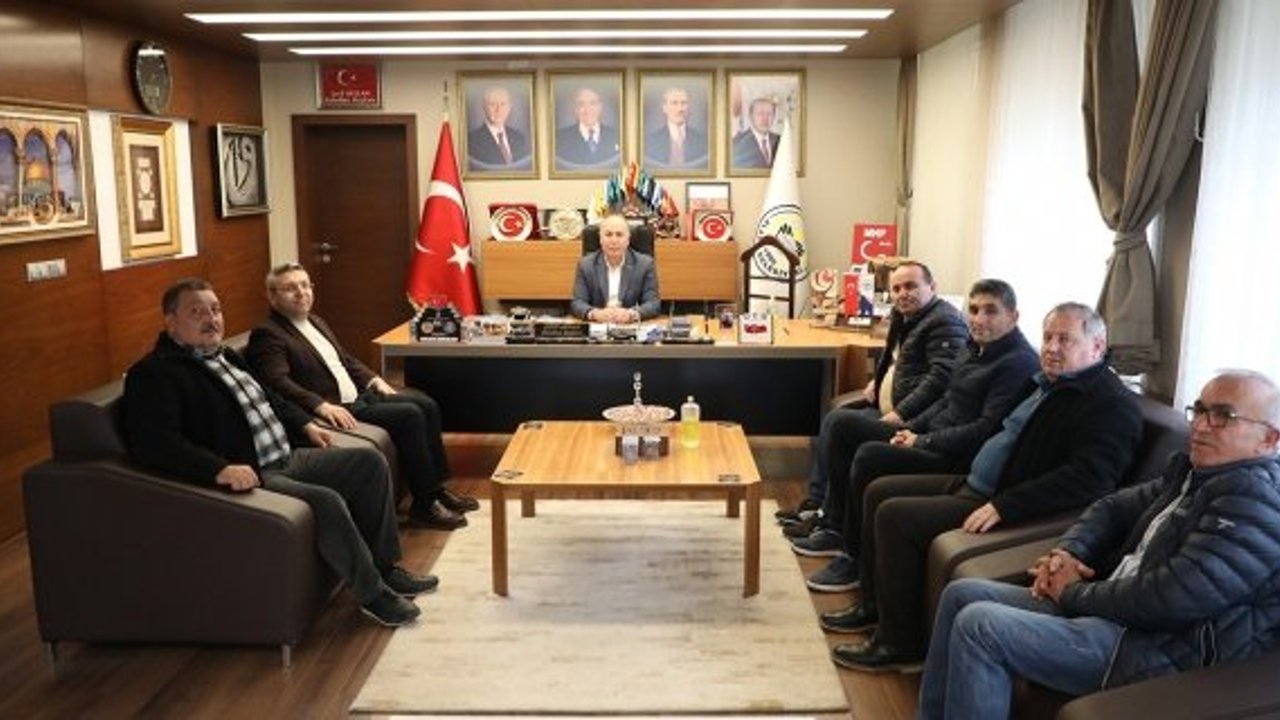 Alaca Şoförler ve Nakliyeciler Odası Başkanı Mustafa Erbaş, yönetim kurulu üyesi arkadaşlarıyla birlikte Alaca Belediye Başkanı Şerif Arslan’ı makamında ziyaret etti.