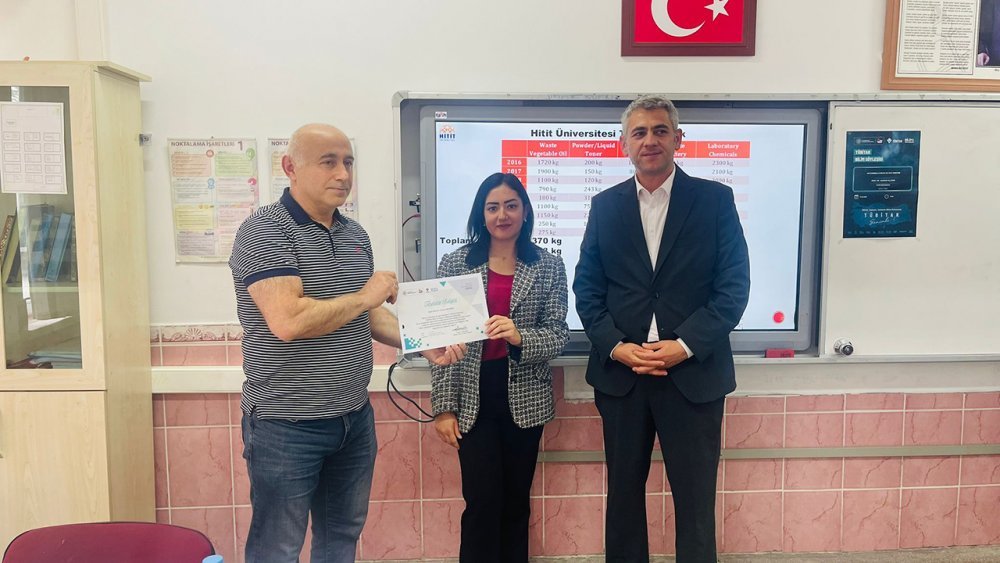 Öğrenciler ve öğretmenlerin yoğun ilgi gösterdiği bu önemli etkinlikte, çevre bilinci, atıkların çevresel etkileri ve sürdürülebilir atık yönetimi gibi güncel konular detaylı bir şekilde ele alındı. Prof. Dr. Dursun Ali Köse, özellikle geri dönüşümün önemi ve bireysel düzeyde alınabilecek basit önlemlerle doğaya sağlanabilecek katkılar üzerine çarpıcı bilgiler paylaştı.