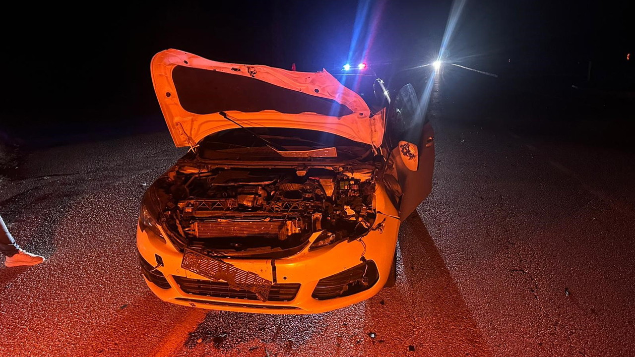Kazada çarpılan dana olay yerinde telef olurken, jandarma ekipleri kazayla ilgili inceleme başlattı.