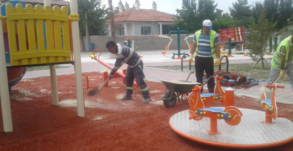 Çocukların oyun oynarken beton yerine halı üzerinde oynamalarını amaçlayan belediye, çalışmalarını sürdürüyor.