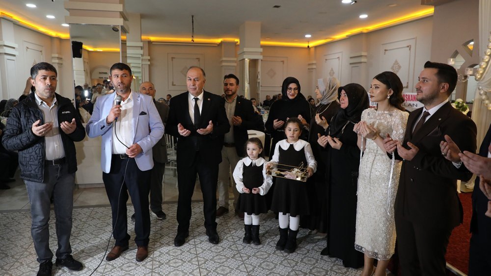 Genç çiftin nişan kurdelesi, Başkan Arslan ve aile büyükleri tarafından yapılan dualar eşliğinde kesildi. Alaca Belediye Başkanı Şerif Arslan, genç çifti tebrik ederek, bir ömür mutluluklar diledi.