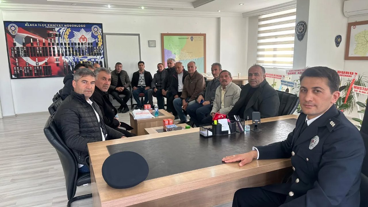 Alaca İlçe Emniyet Müdürü Ramazan Meran, muhtarları makamında ağırladı. Samimi bir ortamda gerçekleşen ziyarette Meran, nazik ziyaretlerinden dolayı muhtarlara teşekkür etti.
