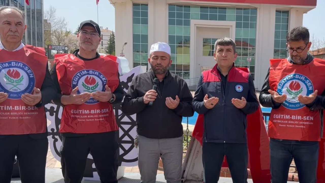 Alaca Cumhuriyet Meydanı’nda bir araya gelen sendika üyeleri adına basın açıklamasını okuyan Eğitim Bir Sen Alaca Şube Başkanı Numan Sözüdoğru, Kahramanmaraş ve Şanlıurfa’da yaşanan ve çok sayıda kişinin ölümü ve yaralanmasıyla sonuçlanan saldırının eğitim camiasını derinden sarstığını belirtti.
