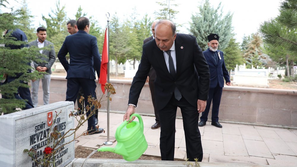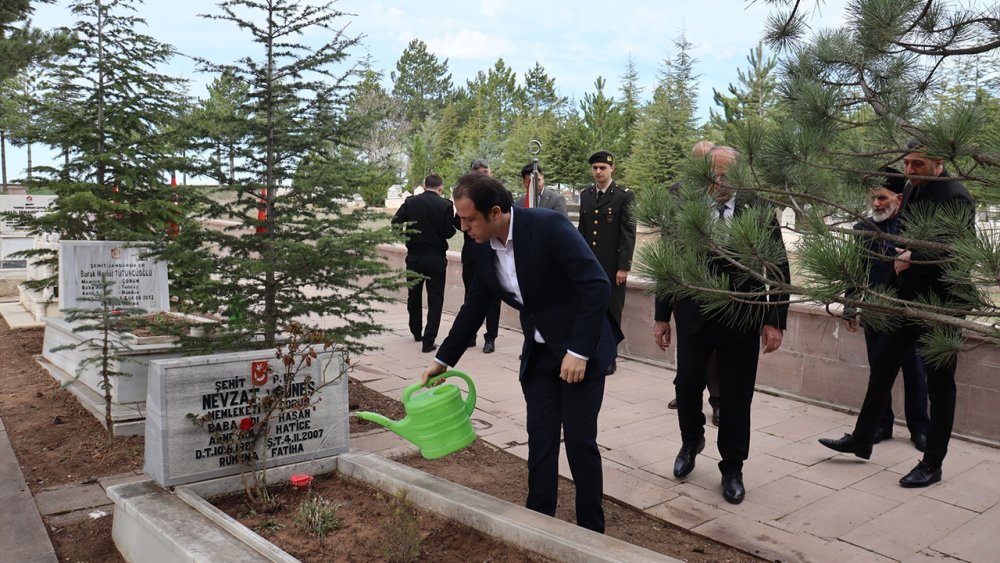 Alaca Kaymakamı Engin Tok, Belediye Başkanı Şerif Arslan ve diğer protokol üyeleri; Cumhuriyet Meydanı’nda düzenlenen bayramlaşma programının ardından Alaca Şehitliğini ziyaret ettiler. Kaymakam Tok ve beraberindekiler, burada tüm şehitlerimiz ve ebediyete intikal eden gaziler için dua ederek, şehitlikte bulunan şehit kabirlerini ziyaret ettiler.